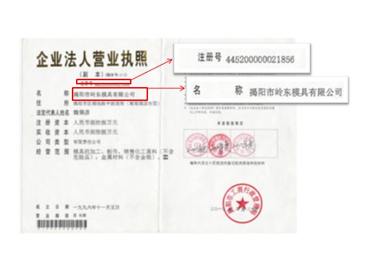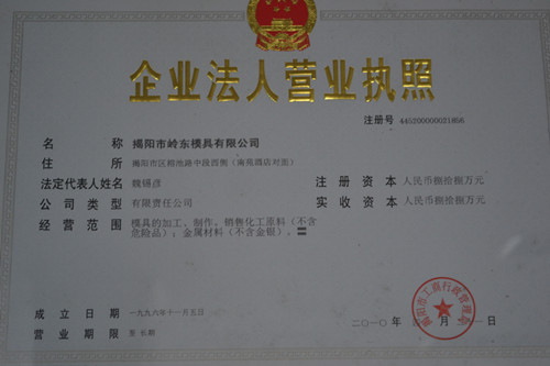 揭陽模具副會長單位                                                                      營業執照